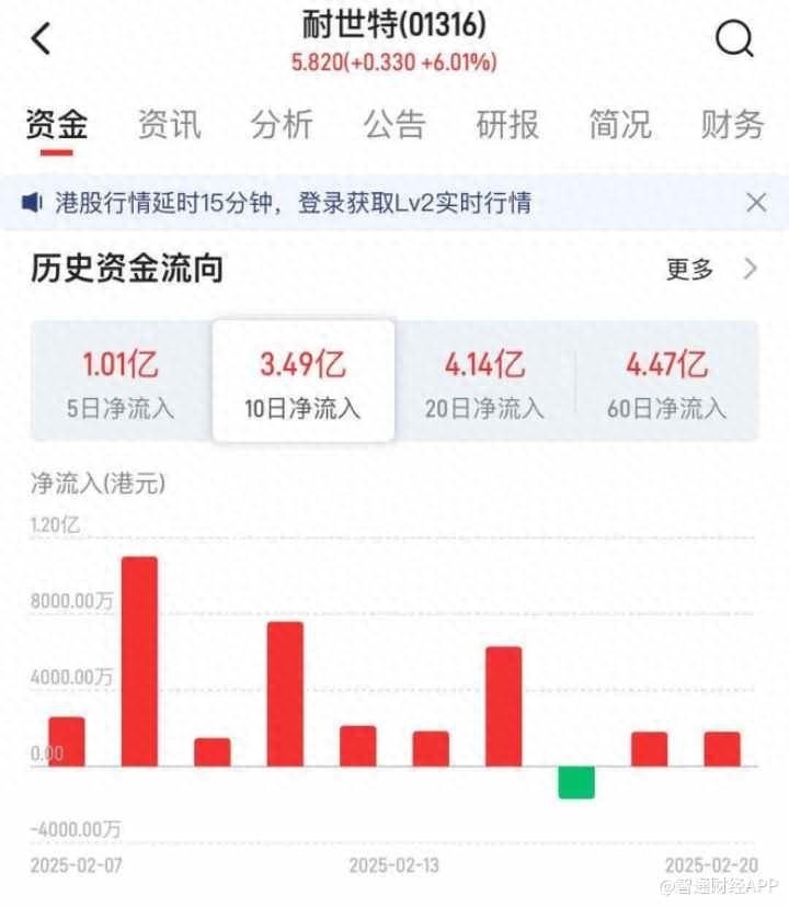 2月21日盘中,耐世特股价一度攀升至6.02港元,创下自2022年9月以来的新高,相较于2月10日收盘价4.71港元,涨幅高达27.8%;月内最高涨幅达到68.2%。智通财经APP数据显示,截至2月20日的近10个交易日,耐世特资金净流入高达3.49亿港元。